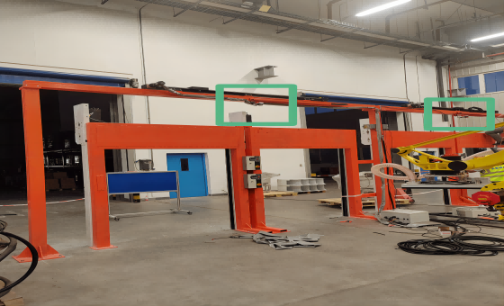 机器人拆码垛搬运工作站,在有叉车运进入时,需要致盲光栅,存在人员误闯入风险